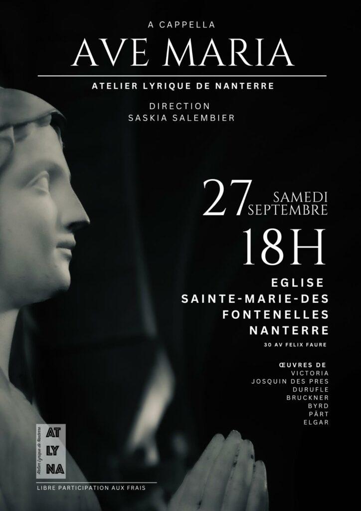 🎶 Une heure à capella d’œuvres méconnues autour de la Vierge avec les chanteurs du conservatoire de Nanterre.